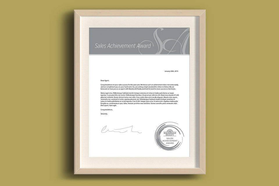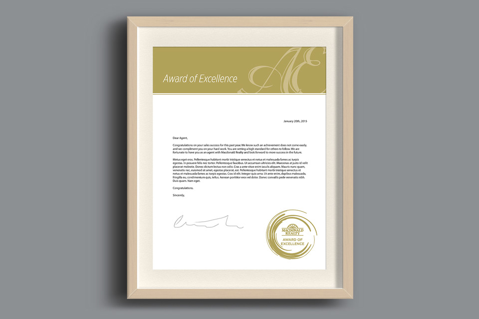 Macdonald Realty Annual Award of Excellence / Sales Achievement Award